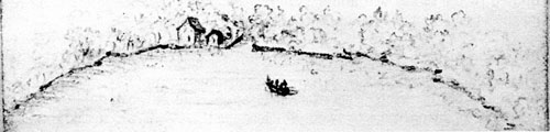 They overnighted at Davis’ Mill and then rose at 4 am to start their day by portaging the canoes past the rapids and putting into Sand Lake. Burrows’ writes “The view of Davies Lake [Sand Lake] is very pleasing. The many islands, as if floating on a transparent mirror which mellowed and reflected by the tint of the morning, strikes the contemplative mind with a sensation of pleasure not easily forgotten.”